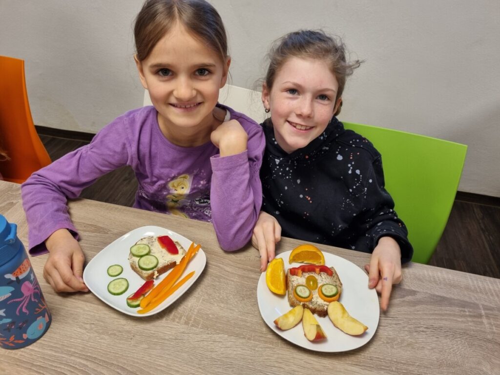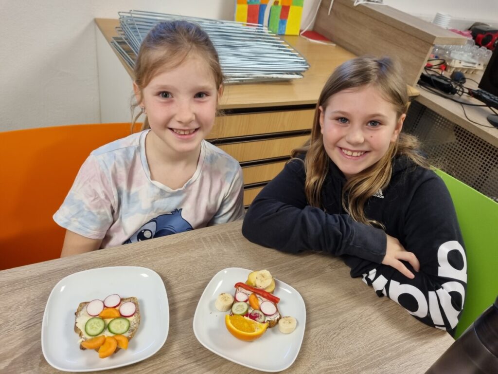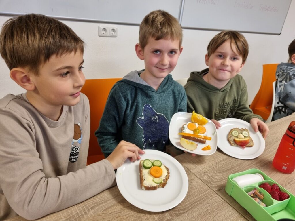 Das Highlight war schließlich das kreative Belegen der Brote. Mit Fantasie entstanden lustige Gesichter, Tiere und bunte Muster – fast zu schade zum Essen! Natürlich wurde am Ende alles gemeinsam verkostet.